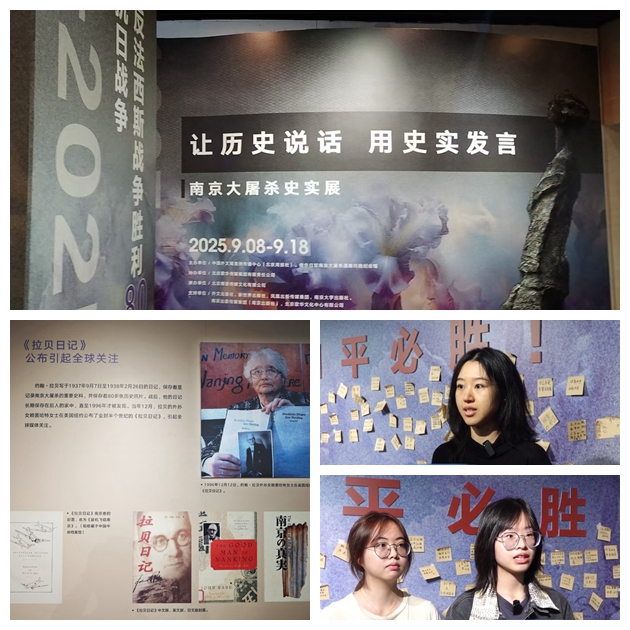 来自实习营的志愿者刘坤越说,几天的志愿实践活动也让她对南京大屠杀的史实有了深入的了解,“最让我印象深刻的是展览对拉贝日记以及其他国际友人的第三方证言的突出展示。他们从亲历者的视角用日记或影像资料的形式,记录了侵华日军的暴行,其客观性和公正性在国际上具有无可争议的说服力。”