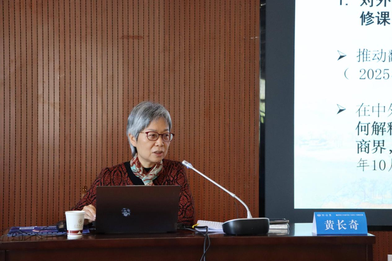 外文出版社英文审定稿专家、全国翻译专业教指委委员黄长奇强调,翻译专业教育应更加重视“翻译中国”战略转型和人工智能技术带来的新挑战新机遇,培养能够对外解读当代中国并具备人机协作能力的跨学科高端翻译人才。她结合时政话语翻译实践案例,分享了时政话语翻译的基本原则和译文背后的政治与语言文化考量。