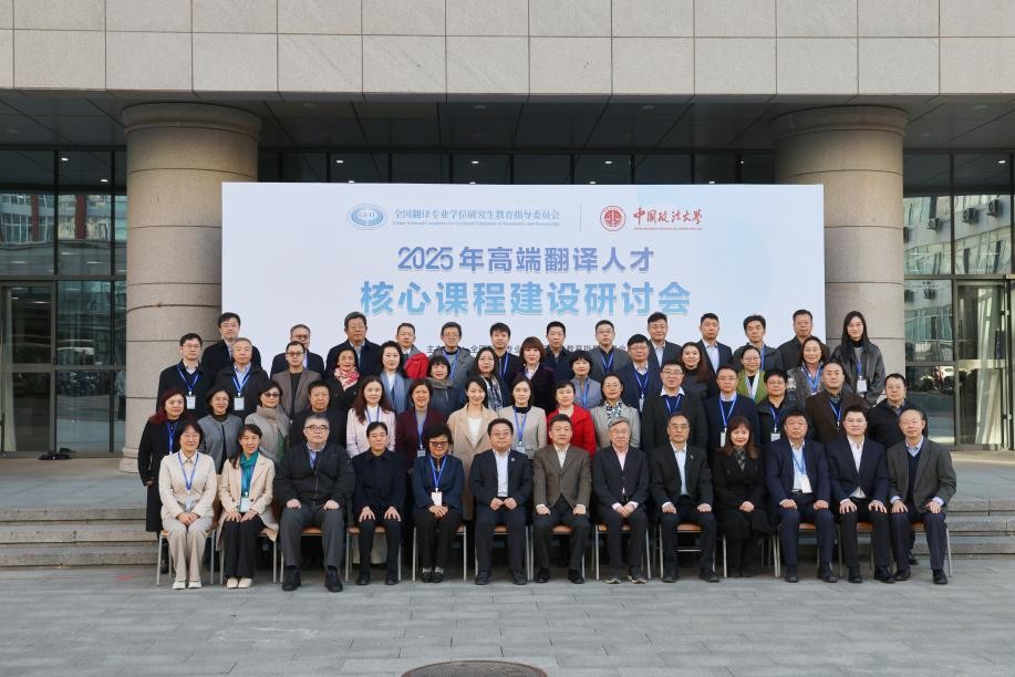 11月13日,由全国翻译专业学位研究生教育指导委员会(以下简称“全国翻译教指委”)主办、中国政法大学外国语学院承办的2025年高端翻译人才核心课程建设研讨会在中国政法大学召开。中国外文局副局长、全国翻译教指委主任委员于涛,中国政法大学副校长于飞出席会议。全国翻译教指委专家、翻译博士专业学位(DTI)授权点、申请自设DTI的多所院校代表以及多家企业代表参加会议。