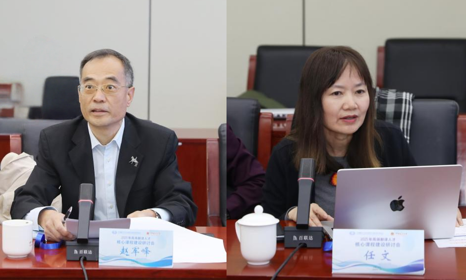 本次会议由全国翻译教指委副主任委员、广东外语外贸大学翻译学研究中⼼主任赵军峰,全国翻译教指委副主任委员、北京外国语大学高级翻译学院院长任文主持。8所首批DTI授权点代表分别介绍了各校核心课程的设置理念与特色内容。