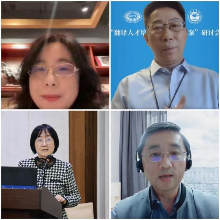 11月12日,由全国翻译专业学位研究生教育指导委员会(以下简称“全国翻译专业教指委”)与中国翻译协会联合主办、外交学院承办的“翻译人才培养的AI时代方案”研讨会以线上线下相结合的形式举办。中国翻译协会常务副会长、中国外文局原副局长兼总编辑黄友义,外交学院副校长孙吉胜,外交学院驻校外交官、外交部公使衔参赞、翻译司原司长许晖,上海外国语大学高级翻译学院院长、全国翻译专业教指委秘书长张爱玲出席会议。中国外文局翻译院副院长、中国翻译协会常务副秘书长邢玉堂,外交学院英语系主任冉继军主持会议。来自新华社、中央广播电视总台CGTN、中国日报社、中国对外翻译有限公司、传神语联网网络科技股份有限公司、世界知识产权组织等单位的业界代表,以及外交学院、中国政法大学、北京语言大学、上海外国语大学、广东外语外贸大学、香港浸会大学、澳门大学、英国巴斯大学、美国明德大学蒙特雷国际研究学院等国内外20余所高校的学界代表参加会议。