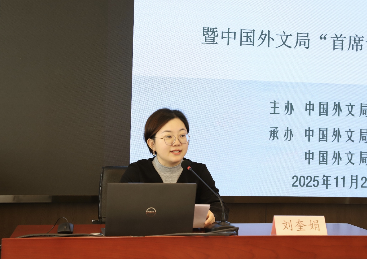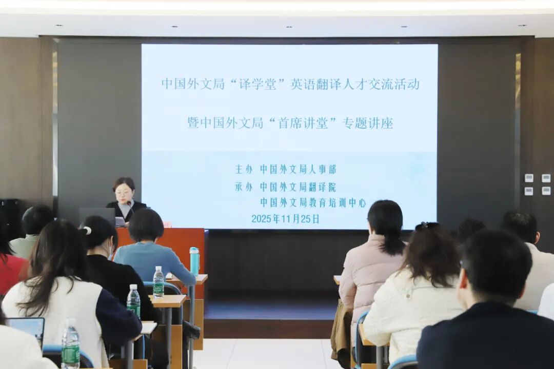 11月25日,中国外文局“译学堂”英语翻译人才交流机制暨“首席讲堂”专题讲座成功举办。活动本次活动邀请中国外文局新世界出版社英语译审、局首席翻译、局英语翻译人才交流机制牵头人韩清月,局美洲传播中心《北京周报》编辑部执行主编、局首席翻译闫威进行分享。外文出版社葡文部主任兼英文部副主任、局英语翻译人才交流机制秘书长刘奎娟主持活动。