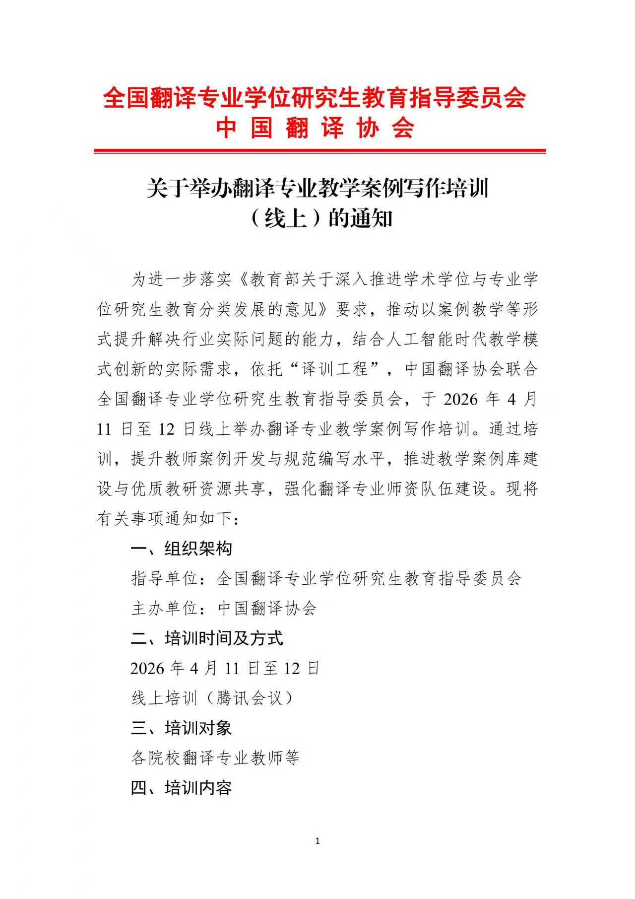 关于举办翻译专业教学案例写作培训(线上)的通知
